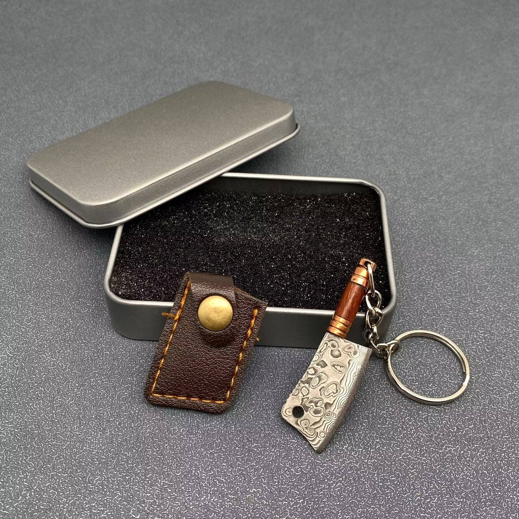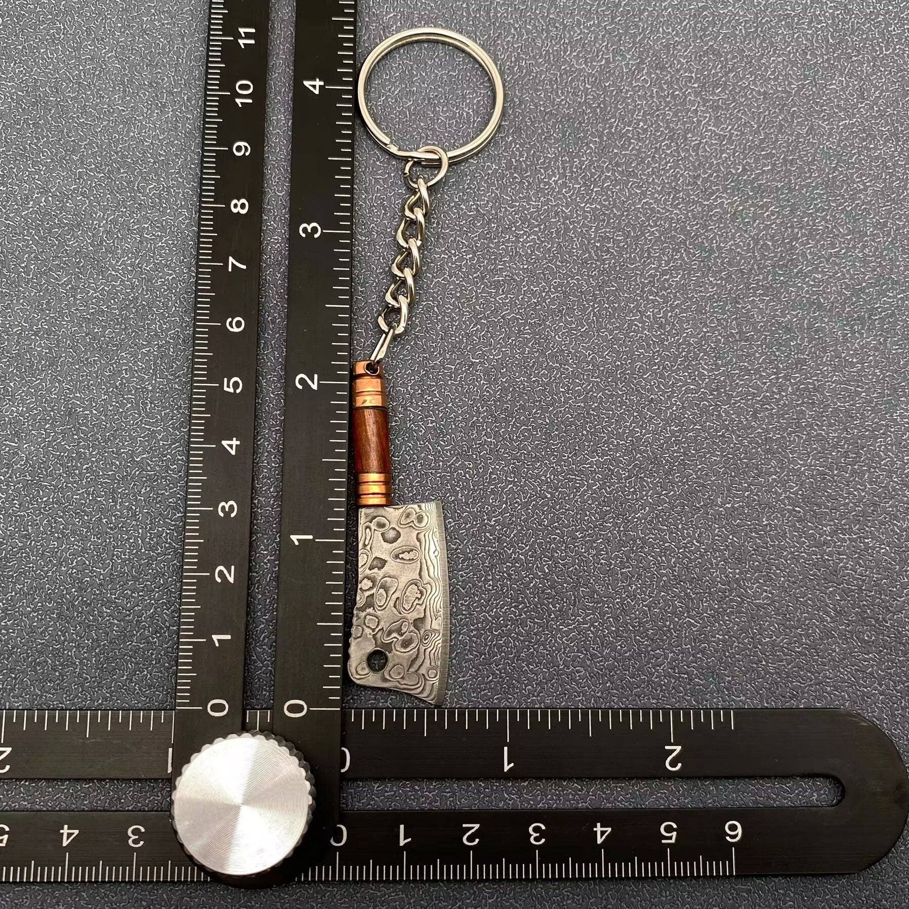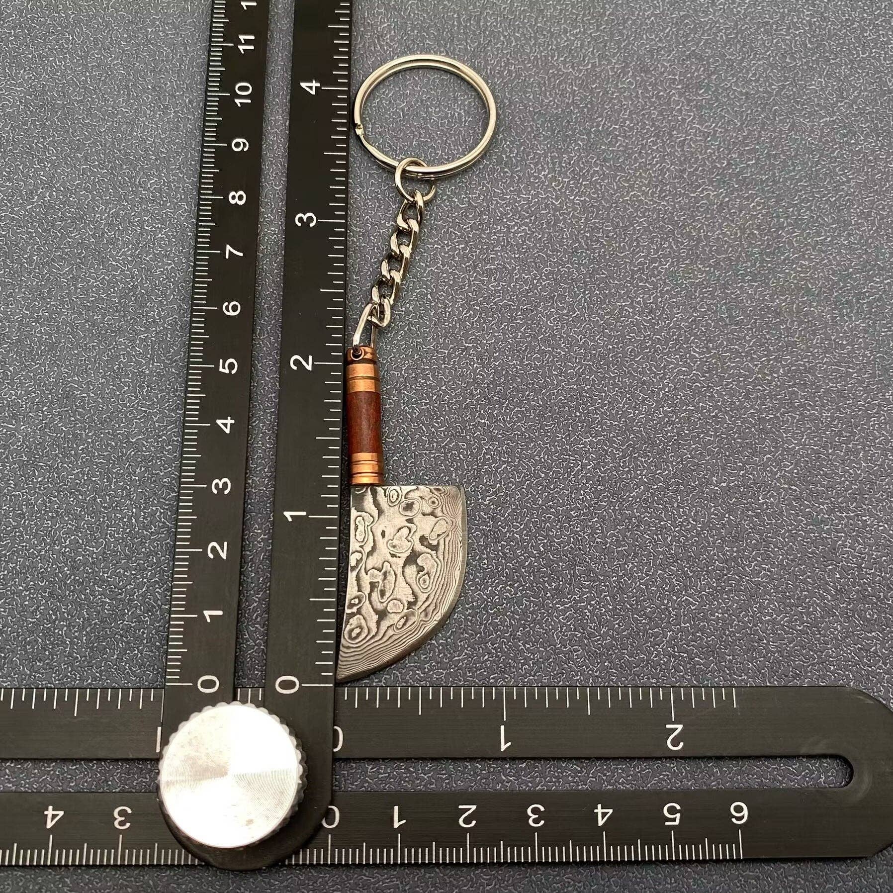 Damascus Blade Wooden Handle Portable Knife Keychain