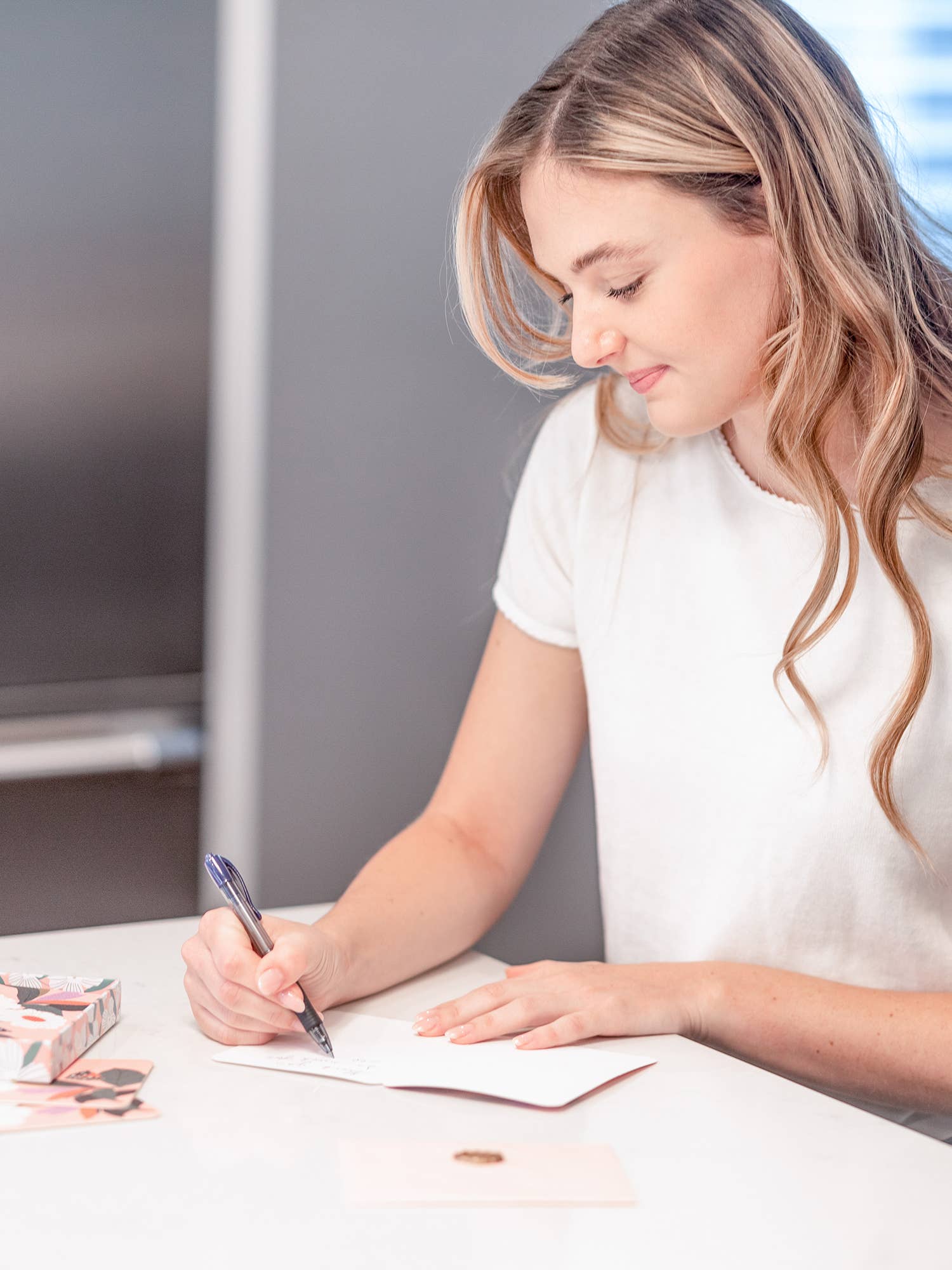 This sophisticated set of note cards with matching wax seals comes in a reusable box that’s perfect for storing greeting cards, letters, and other keepsakes. Each set includes eight embossed cards, nine matching envelopes, and eight self-adhesive wax seals. The 4.25 × 5-inch note cards are blank inside, leaving plenty of room for personalized messages for any occasion, and the correlating wax seals provide an elegant finishing touch. Stunning stationery from Studio Oh! fits all of life’s big and small occasions.