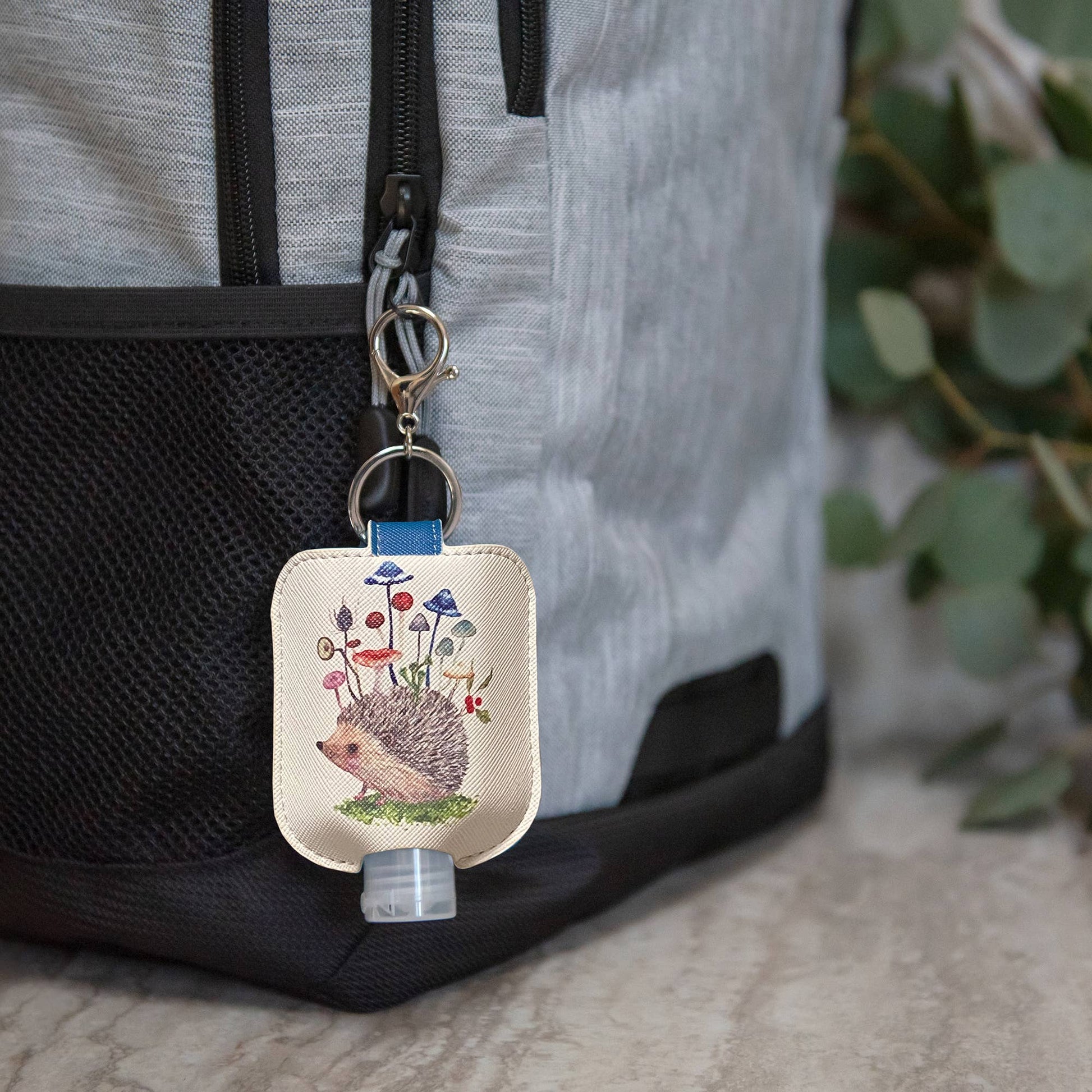 Tired of searching for your hand sanitizer at the bottom of your bag or backpack? Now it is easily accessible with these unique hand-sanitizer holders from Studio Oh! The 2-ounce travel bottle fits inside the smartly designed faux-leather pouch that closes securely with a snap. Clip one to your keys, purse, backpack, diaper bag, or dog leash to disinfect your hands wherever you go. (Hand sanitizer not included.)