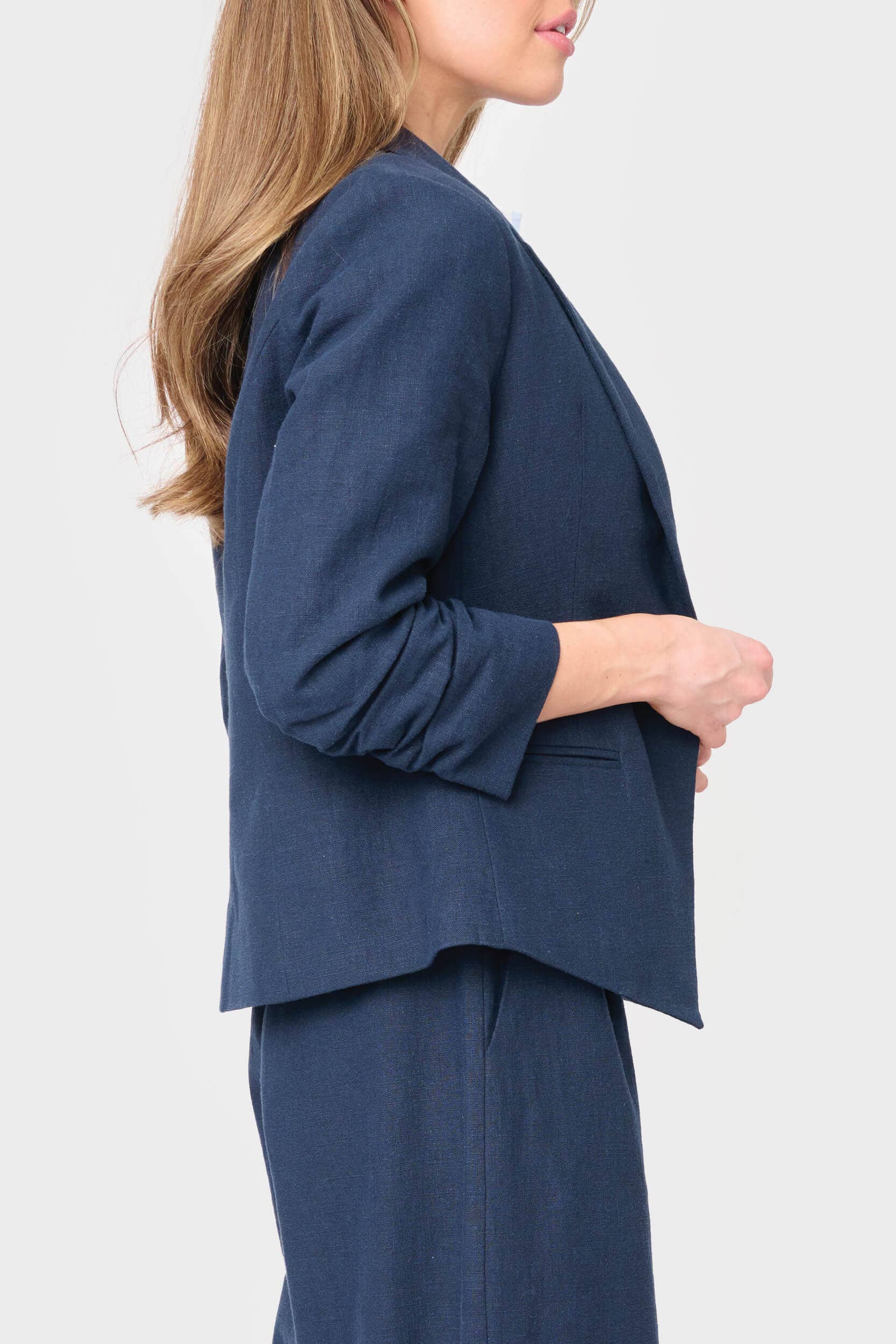 Gibson Notch Collar Linen Blazer with Rouched Sleeve