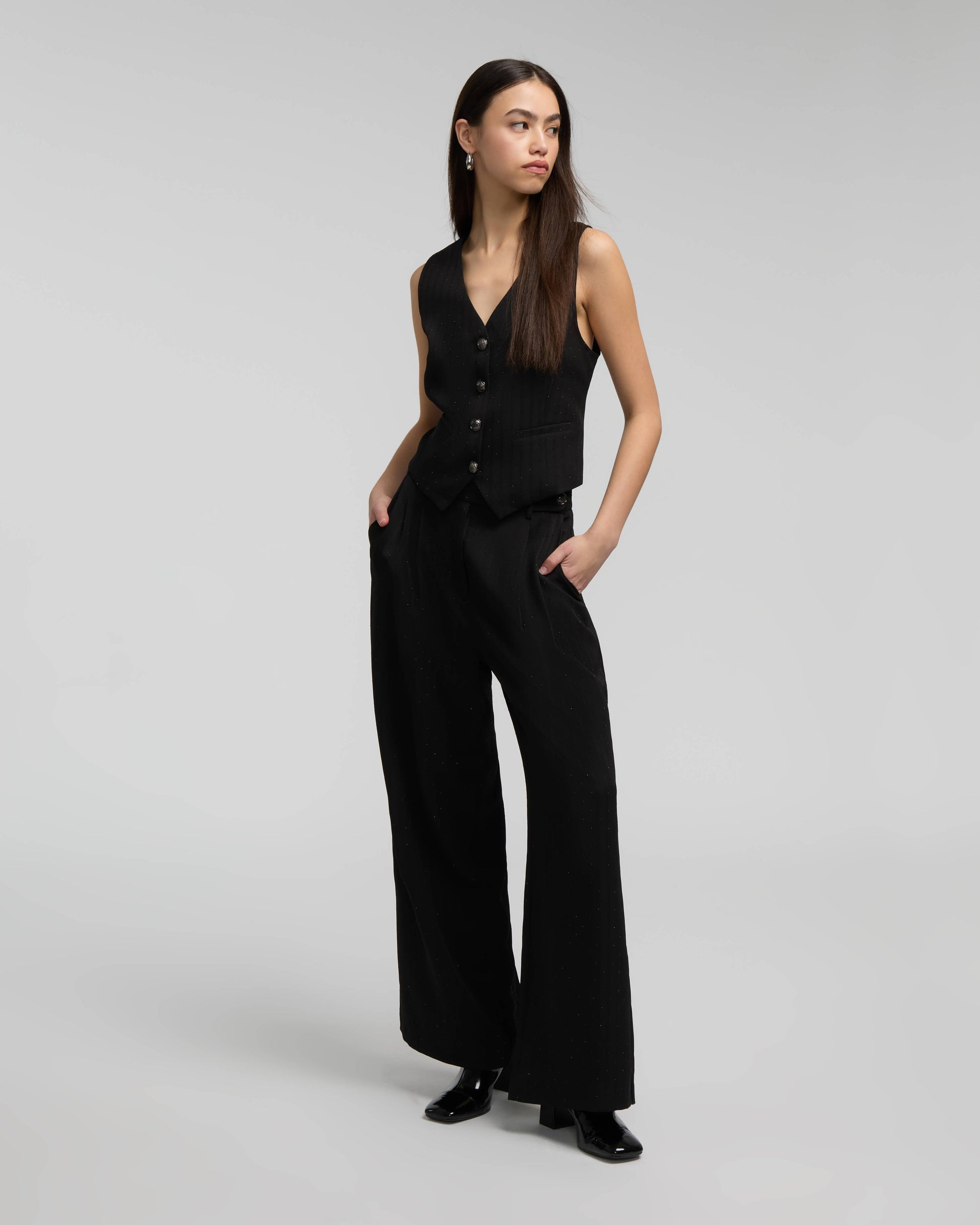 DTM RHINESTONE PINESTRIPE VEST WITH FAUX POCKETS AND DTM BUTTONS