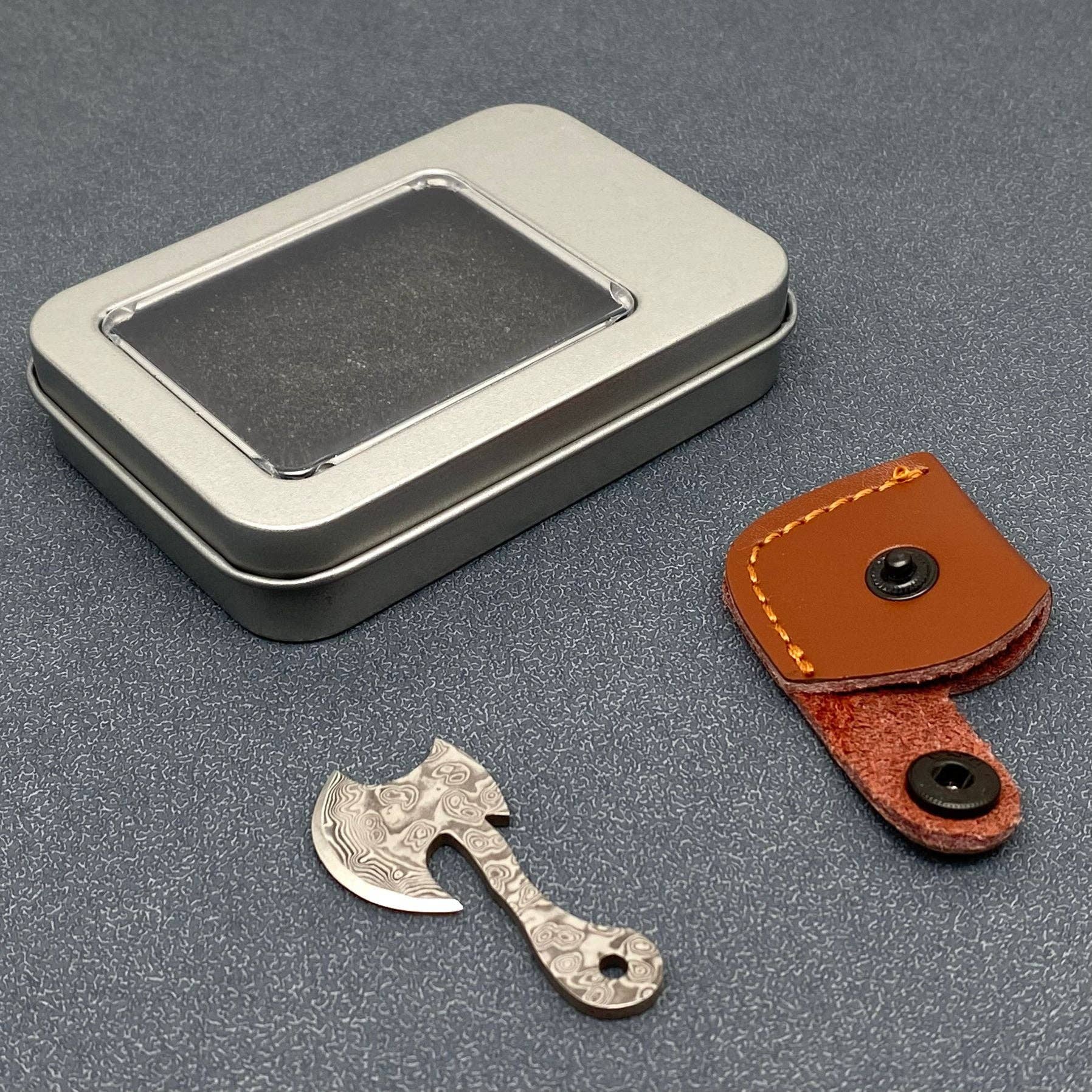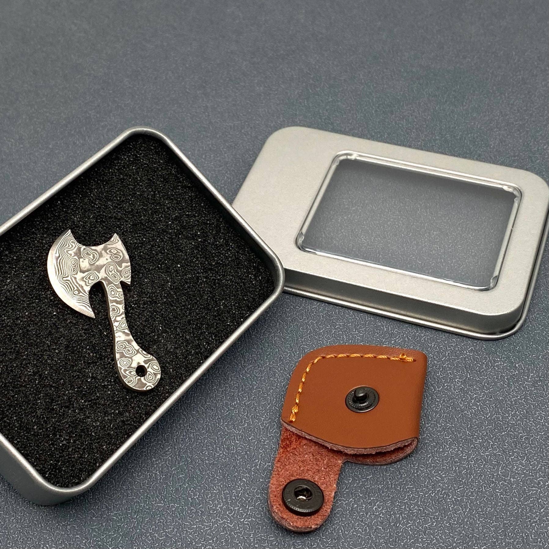 Pattern Damascus Steel Mini Axe with Cover and Metal Box